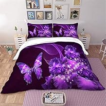 Housse De Couette 200x200 Femme Fleur Violette Imprimée Microfibre